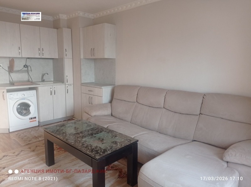 Имоти-БГ-Пазарджик предлага двустаен апартамент при Градски пазар, обзаведен. Всекидневна с кухненско обособена част, спалня, баня с тоалетна, тераса. Видеонаблюдение на етажа.