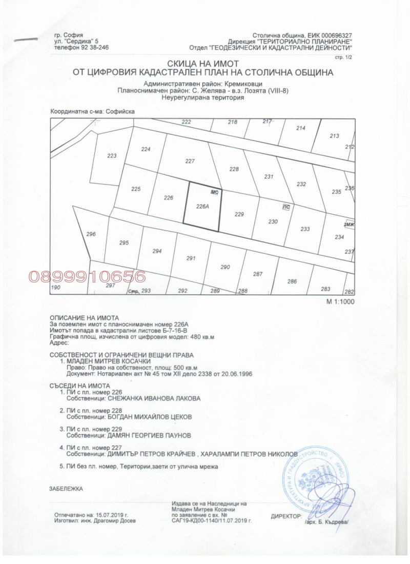 Предлагаме за продажба поземлен имот с площ от 500 кв. м. , разположен в землището на с. Желява, с бърз и удобен достъп до гр. София.