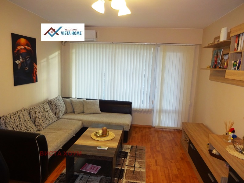Предлагаме топъл и изцяло южен двустаен апартамент в тих и спокоен район в Цветен квартал. Жилището се намира на втори жилищен етаж. След основен ремонт на чиста жилищна площ от 67 кв. м. , са обособени две отделни спални с отделни климатици, както и просторна кухня с усвоена тераса. Към всяка от двете спални има прилежаща тераса. Баня и тоалет са в едно помещение. Обзавеждането включва всички необходими електроуреди и мебели. Банята е след основен ремонт. Локацията е отлична в близост до училища, детски градини, магазини.