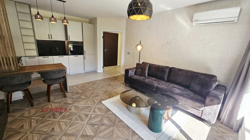 Агенция БулФра ексклузивно отдава под наем нов, елегантно обзаведен двустаен апартамент, разположен в комплекс от затворен тип, граничещ с Южен парк.