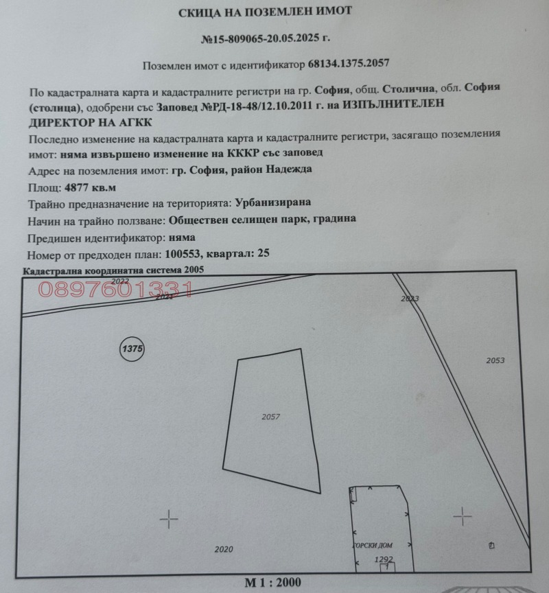 Предлагам поземлен имот с площ 4877 кв. м, разположен в паркова среда в гр. София, район Надежда локация с постоянен поток от хора и отличен инвестиционен потенциал. Имотът е подходящ за развитие на доходоносни проекти, съобразени с парковата среда. Отлична възможност за инвеститори с визия за устойчив бизнес и дългосрочна възвръщаемост.