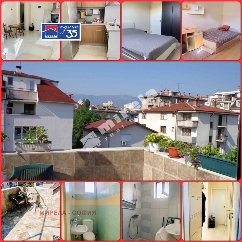 Апартаментът е на последен етаж с отлична панорама. Застроената му площ е 61, 62 кв. м и се състои от антре, хол с кухненски бокс, две спални, баня, самостоятелна тоалетна и прекрасна тераса към Витоша. Продава се в много добро състояние.