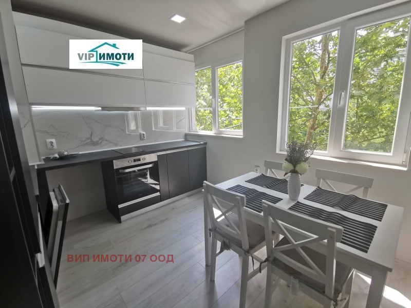 Жилището е с подменени електрическа и ВиК инсталации, нова дограма, качествени подови настилки и фини мазилки. Кухнята е функционално организирана с модерни шкафове, вградени уреди и LED осветление, като пространството е светло и добре усвоено с обособена трапезарна част до прозорците. Спалнята е просторна и завършена в неутрални тонове, създаващи усещане за уют и комфорт, с практични мебели и добро разпределение. Банята е изцяло обновена с модерна визия и качествени материали.