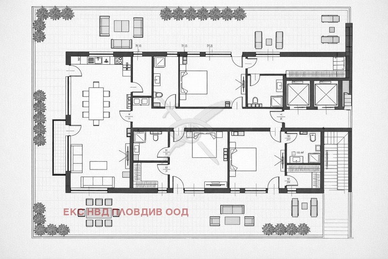 РАЗПРЕДЕЛЕНИЕ:Разполага с площ от 400 кв. м. разгърната в следното функционално разпределение: Голям хол , 3 спални, 4 бани , 3 дрешника , тераса.
