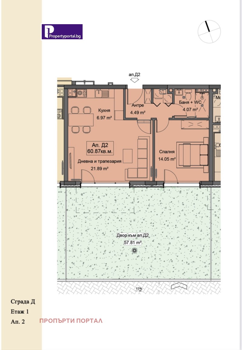 🔹 Индивидуален двор към апартамента 57, 81 кв м. , склад 3, 10 кв. м. , включени в квадратурата и жената!