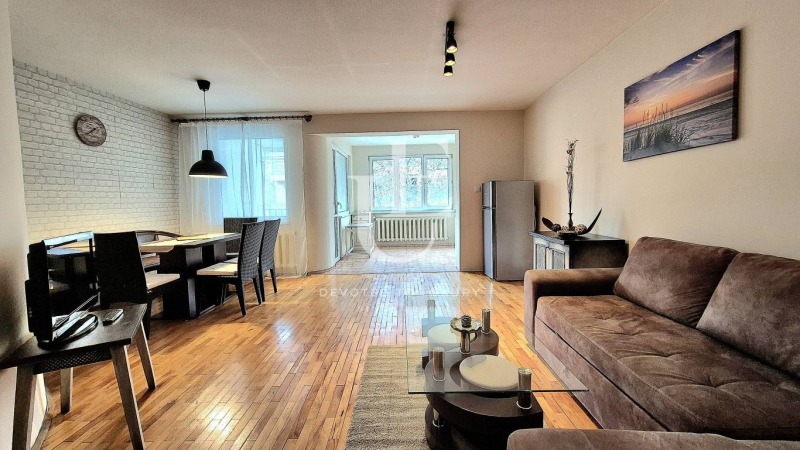 Апартаментът впечатлява с характер и внимание към детайла. Интериорът е стилизиран с ръчно изработени мебели и индивидуални дизайнерски решения, които придават усещане за топлина и автентичност. Дървени елементи, естествени материали и внимателно подбрани акценти създават атмосфера, различна от стандартните наемни имоти.