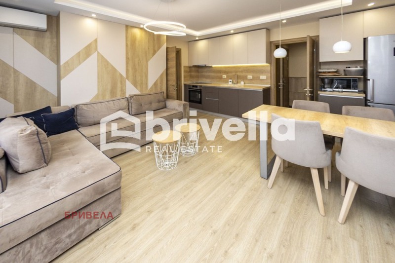 Представяме на вашето внимание тристаен апартамент с изложение: север/запад със следното функционално разпределение: входно антре, дневна с кухненски бокс и трапезария, две спални с излаз на обща тераса, баня с тоалетна, самостоятелна тоалетна и мокро помещение. Жилището се продава с цялостното обзавеждане включително с всички ел. уреди и е изпълнено по дизайнерски проект с мебели по поръчка, качествени уреди и отопление с висок клас климатици. Сградата е качествено тухлено строителство, въведена в експлоатация от 2021 година, висок клас дограма с троен стъклопакет на Ролпласт, два броя асансьори thyssenkrupp, контрол на достъпа, видеонаблюдение и подземни гаражи с покрита рампа към тях, което предпазва от сняг и лед. Има възможност за закупуване на двойно подземно паркомясто с обща площ от 30 кв. м. в непосредствена близост до асансьорите на цена от 47 000 евро. Район с добре изградена инфраструктура и зелени площи около сградите. В близост до новоизградена метростанция, тролеи 1 и 3, автобуси 78, 120 и нощен градски транспорт. 199-то училище 'Св. Апостол Йоан Богослов', ДГ 92 'Мечта', денонощна аптека, магазини от големите вериги Фантастико, Била и CBA. За ваше улеснение прилагаме схема на разпределение на имота.