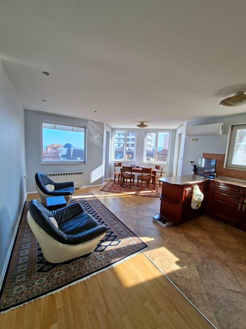 'Атлантис-МВ' отдава под наем 3-стаен апартамент в ТОП центъра на град Варна, зад хотел 'Черно море'. Жилището е след основен ремонт, изключително слънчево и топло, с частична морска панорама. Апартаментът се състои от дневен тракт с оборудвана кухненска част и излаз на две тераси, две спални с нормални размери и тераса към едната, баня и тоалет - отделни помещения, широко и удобно антре с място за вграден гардероб. Стаите са на естествен паркет и са климатизирани. Двете спални ще бъдат обзаведени според нуждите на бъдещите наематели. За повече информация и огледи: В. Димитрова, тел. 0888257909