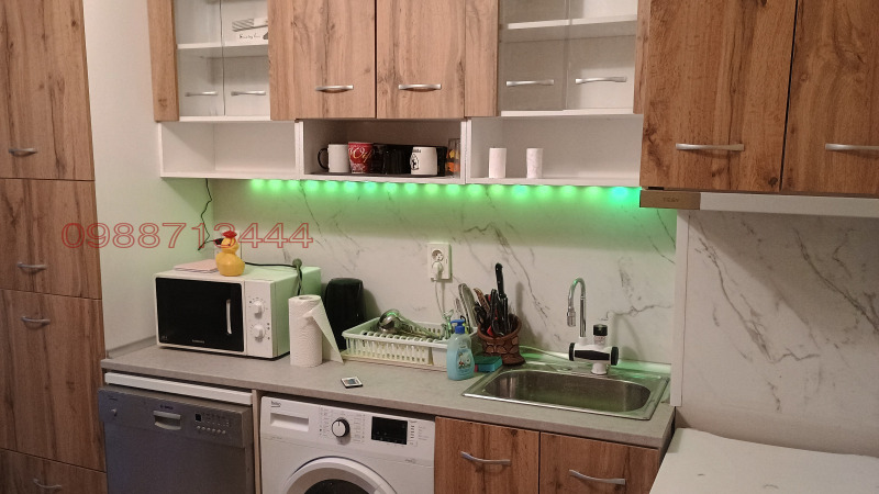 Апартаментът е саниран след основен ремонт. Има всичко необходимо за живеене, състои се от 2 стаи и кухня, коридор, баня, голям тераса, антре пред входа, което е с ограничен достъп и място за багаж пред входа. Изглед към градската градина етаж 2
