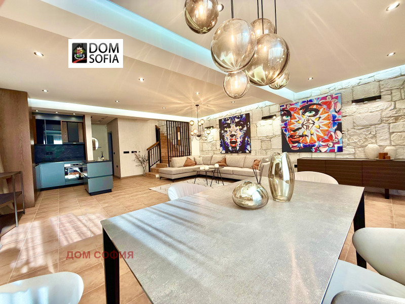 Къщата се намира в квартал Карпузица, ул. Китна 6 . Предлага се напълно обзаведена. Ет. 1- : дневна, спалня, баня. Ет. 2- : 2 бр. спални с 2 бр. бани. Отопление - подово на газ, камина на газ и климатици Daikin . Видео наблюдение, периметрова СОТ охрана, алуминиева дограма с термомост 80 мм, входна врата Hormann. Изцяло италиански мебели и санитария. 2 бр. паркоместа в двора. Къщата не е ползвана. АКТ 16 -2025г.