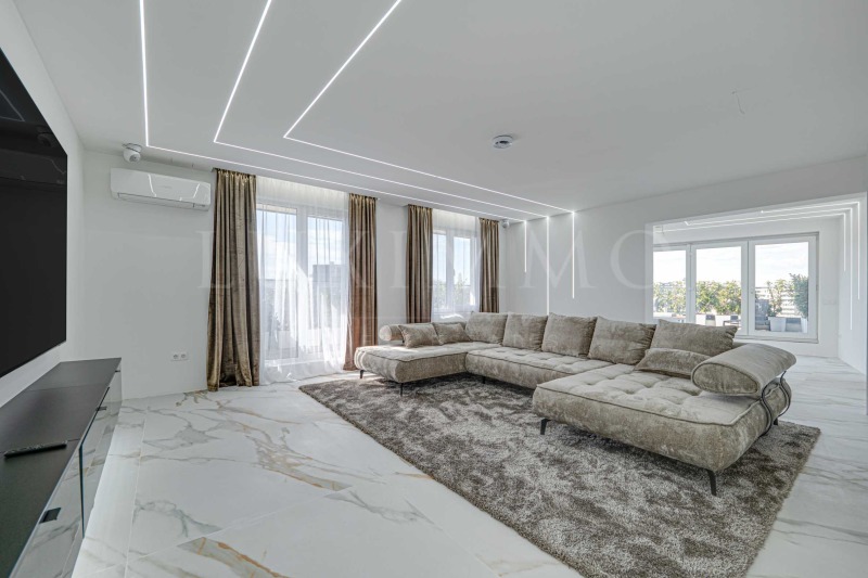 Апартаментът е с обща площ от 230 кв. м. , изключително светъл и просторен, разпределението на помещението е следното: