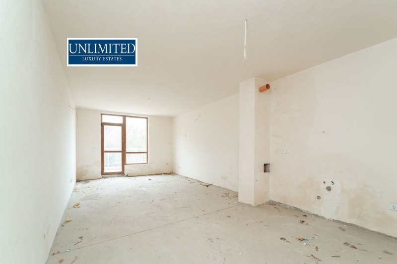 Хол, трапезария и кухня с балкон , две спални с балкон, две бани, коридор.