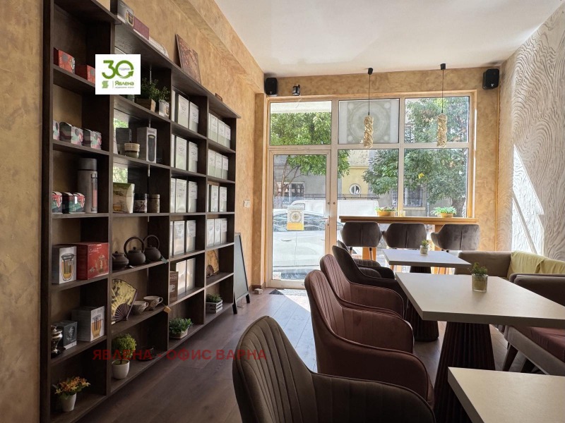 Предлагаме за продажба напълно обзаведено и оборудвано заведение (кафе-сладкарница), разположено на партер в тухлена сграда, в сърцето на град Варна, в близост до централната градска част и ключови пешеходни потоци. Имотът е функционално разпределен на едно ниво тип оупън спейс със стилен дизайнерски интериор и капацитет 30 седящи места. Пространството е светло и приветливо, с двойно осветление, което създава уютна атмосфера за клиенти през целия ден. Заведението се продава изцяло обзаведено и оборудвано с професионална техника за кафе. Отлична възможност както за собствен бизнес, така и за инвестиция с добра възвръщаемост, предвид централната локация и готовия формат на обекта. Подходящо за кафе-сладкарница, бистро, винен бар, шоурум или друг търговски обект.