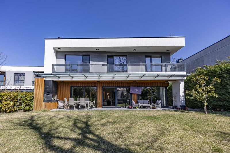 Имотът впечатлява с просторни интериорни пространства, собствена СПА и релакс зона и красива панорама към Витоша, която се разкрива както от двора, така и от част от спалните. Къщата е създадена с внимание към детайла и високо качество на изпълнение, като съчетава луксозни материали, функционално разпределение и модерни технически решения, осигуряващи комфорт и автономност.