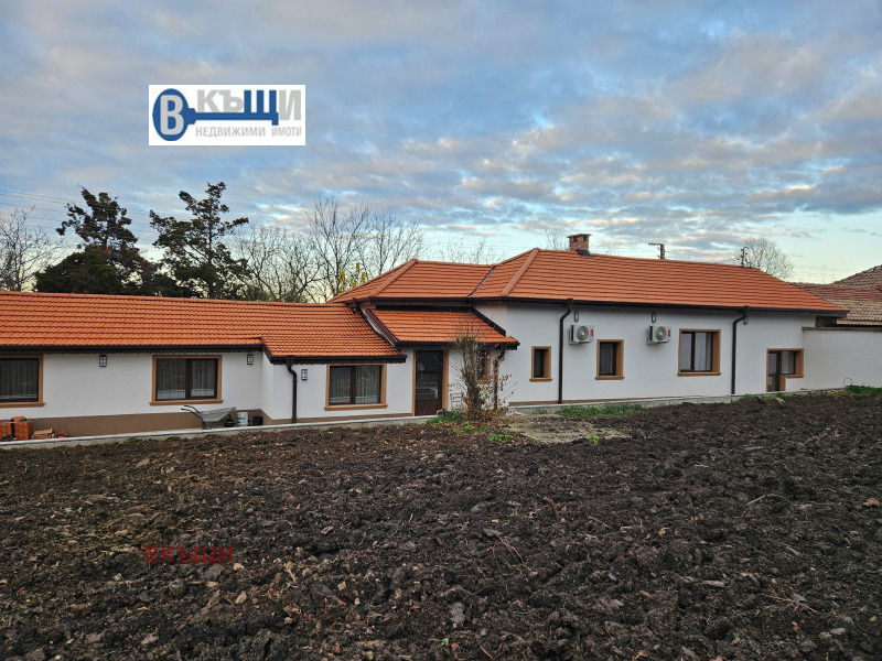Предлагаме Ви къща на един етаж в с. Ново село на 20км. от град Велико Търново. Къщата е на едно ниво с обща площ от 210кв. м. и 1 700кв. м. дворно пространство. Имота е след основен ремонт подменени са Ел. и ВиК инсталациите, външна изолация, висок клас PVC дограма, както и чисто нов покрив. С топла връзка между двете нива. Разпределението на стаите е следното: Първо ниво - входно антре, голям и светъл хол с кухненски кът и баня с тоалетна. На второто ниво са разположени: коридор, 3-спални, както и баня с тоалетна. Всяка една стая е оборудвана с климатик. Цялата къща ще бъде обзаведена и оборудвана с изключение само и единствено на кухня. Към къщата има и гараж с автоматична ролетна щора, а достъпа до гаража е с топла връзка към къщата, също и чрез външна врата от към двора. Имота се намира на много приятно и тихо място, в близост до природата, подходящо за разходки. Селото е много добре устроено разполага с всекидневен автобусен транспорт и хранителни магазини. Не се колебайте, а звъннете за оглед това може да е вашия нов дом или кътче за отдих и почивка от големият шумен град.