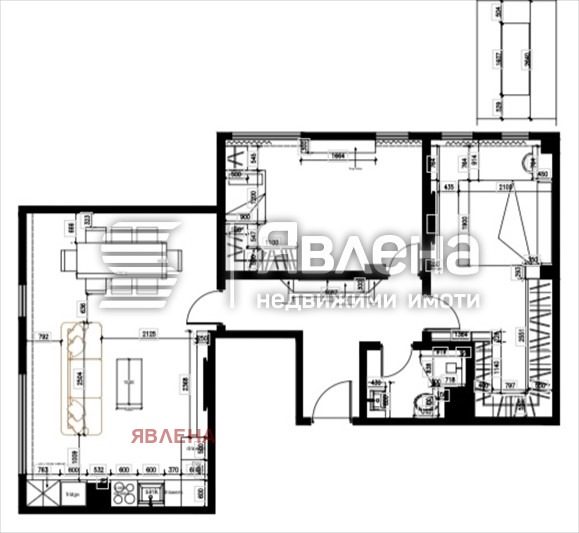 Светла дневна с кухненски бокс и излаз към голяма тераса с неповторима гледка към Витоша.
