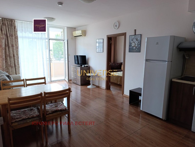Предлагаме за продажба апартамент 2+1 в Слънчев бряг. Състои се от кухня-трапезария, 2 спални, баня и тераса. Апартаментът е обзаведен и оборудван. Комплексът е с много удобно местоположение и удобства. В близост се намират голям супермаркет Младост, аптеки, кафенета, магазини и автогара. Инфраструктурата и удобствата в комплекса включват: асансьор във всеки вход, басейн за възрастни, детски басейн, бар край басейна, ресторант, зона за шезлонги на открито, фитнес зала и контролиран достъп. Акт 16. #5741