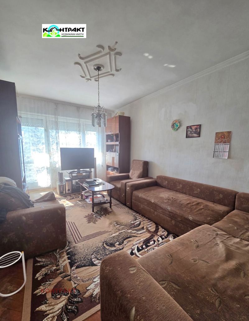Продава две стаи с кухня, тухла, 67 кв. м. , разпределение: хол, кухня, спалня, баня и тоалетна, килер, две тераси. Изложение север/юг. Апартаментът е за ремонт, но може да се преустрои на всекидневна с две спални. Мазе -8 кв. м. Паркинг пред блока, близо до училище, детска градина, магазини, аптеки, спирки на градският транспорт. За повече информация и огледи 0888/448432, 0877/887325