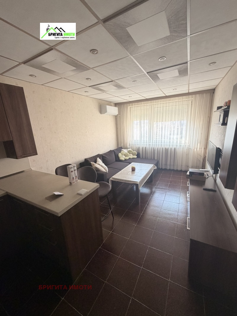 Тристаен апартамент преустроен от двустаен. Намира се близо до училище, детска градина, супермаркет Билла, Лидл, други малки търговски обекти, спирки на градския транспорт, облагородени зелени площи. Блокове 506-506А. Етаж 7/8. Изложение югоизток/еверозапад. Разпределение: дневна с кухненски бокс, детска стая, спалня, /бившата кухня с остъклен балкон/, баня отделно тоалетна, килер. На теракот и ламинат. След ремонт. Към имота има мазе. Продава се с наличното обзавеждане и оборудване. Подържана сграда, много добър вход, спокоен и комуникативен район. КЛЮЧ. За контакти Бригита Арсенова 0888734706, 0895626816