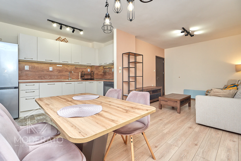 Апартаментът е много светъл, вътрешен. Предлага се напълно обзаведен и оборудван, в отлично състояние, готов за бързо нанасяне. Кухнята е оборудвана с електроуреди, а във дневната и едната спалня са монтирани климатици.