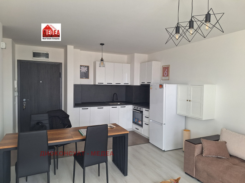 Ref. No1181. Предлагаме просторен двустаен апартамент, който очаква своите ПЪРВИ НАЕМАТЕЛИ. Намира се на 200м от метростанция и в близост до НБУ!Допуска се дом. любимец куче! Състои се от: коридор, просторен хол с кухненски бокс и тераса, спалня, баня с wc. Изцяло обзаведен и оборудван апартамент, включително ТV, миялна машина, микровълнова, посуда и др. Непреходен, изложение - югоизток. Отопление на ток с климатици. Домофон. Видео наблюдение. Такса към етажната собственост 20eur. на месец. В близост спирки на градски транспорт, метростанция, хипермаркет, заведения, магазини, и др.
