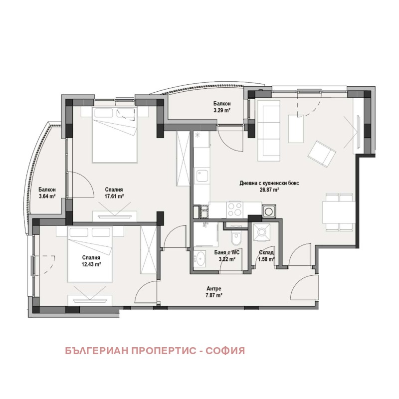 Проектът предлага дизайнерски завършени общи части и подземен и надземен паркинг с контролиран достъп, осигуряващи удобство и сигурност. Стратегическата локация в близост до бъдеща метростанция, нов булевард и Околовръстен път, превръща имота не само в комфортен дом, но и в сигурна инвестиция.
