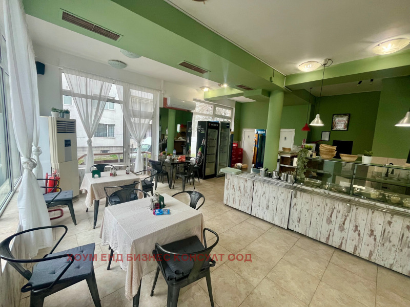 Помещението е със статут на Бистро, което позволява различни варианти за ползване - ресторант, сладкарница, бърза закуска и др. Чиста застроена площ на обекта от 140 м2, и е разделена на голяма зала за клиенти, кухня, миално помещение, хладилно помещение, разплага и с прилежащ склад от 12м2 извън тази квадратура. Заведението има и прилежаща градина, покрита с тента от едната страна. Към момента има възможност, спрямо настоящото оборудване за - 50 места вътре и 50 места в градината. Помещението има вентилация и аспирация. За отопление и охлаждане са поставени два нови климатика.
