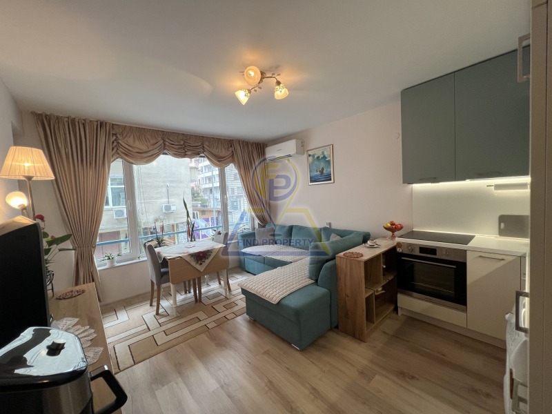 Всекидневна много светла, с големи френски прозорци с двойно отваряне и падащи комарници, в която е монтиран безшумен климатик MITSUBISHI ELECTRIC. Изработена е по поръчка нова кухня с вградени: хладилник, фурна, керамичен плот с 4 котлона, аспиратор и пералня. В зоната за отдих има голям ъглов диван с функция за сън, който се превръща в просторна спалня с ракла. Поставени са още разтегателна маса с 4 тапицирани стола и голям скрин;