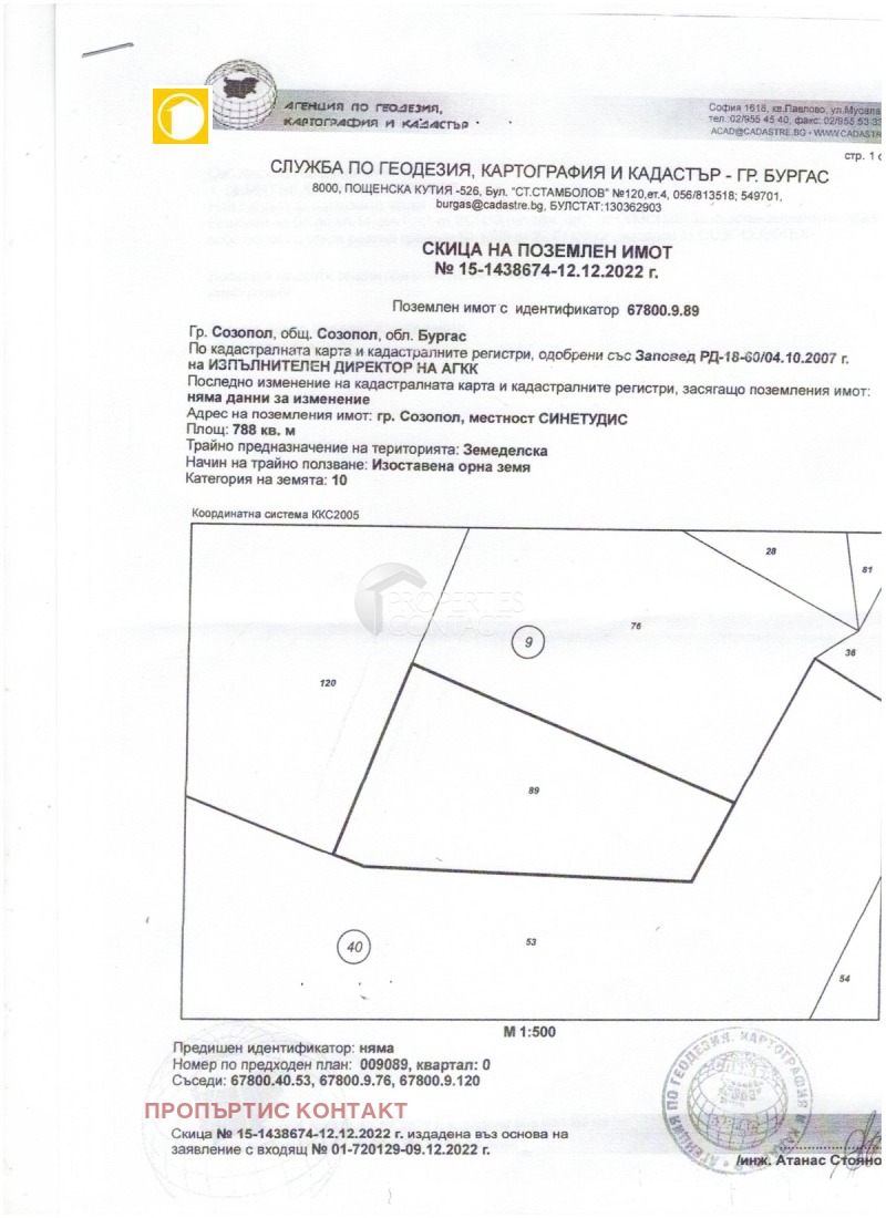 Продаваме земеделска земя в Созопол, местност Синетудис, близо до морето и плаж Каваци. Земята е с площ от 788 м2. Подходяща е за построяване на сграда с височина до 10 метра и плътност на застрояване в имота 30%. Парцела е с ромбоидна форма. Плаж " Каваците" се намира в залив, на около 3км южно от град Созопол. Плажът се намира близо до стария път Созопол – Дюни. Плажната ивица е заобиколена от гора тополи, откъдето идва и името на плажа (" кавак" от турски означава " топола" ). Плажът има охраняема и неохраняема зона. Пясъкът е фин, жълт. Дъното е равно, пясъчно. Предлагат се под наем чадъри и шезлонги, но има и безплатен участък, който се простира предимно в неохраняемата зона. Край плажа са разположени няколко заведения за хранене и бар. В близост до плажа се намират къмпинг " Каваците" и къмпинг " Смокините" . До плажа има и платен паркинг. Близо до плаж Каваците има хотели и автобусни спирки, където може да се хване автобус до Созопол, Бургас, Приморско и Царево.