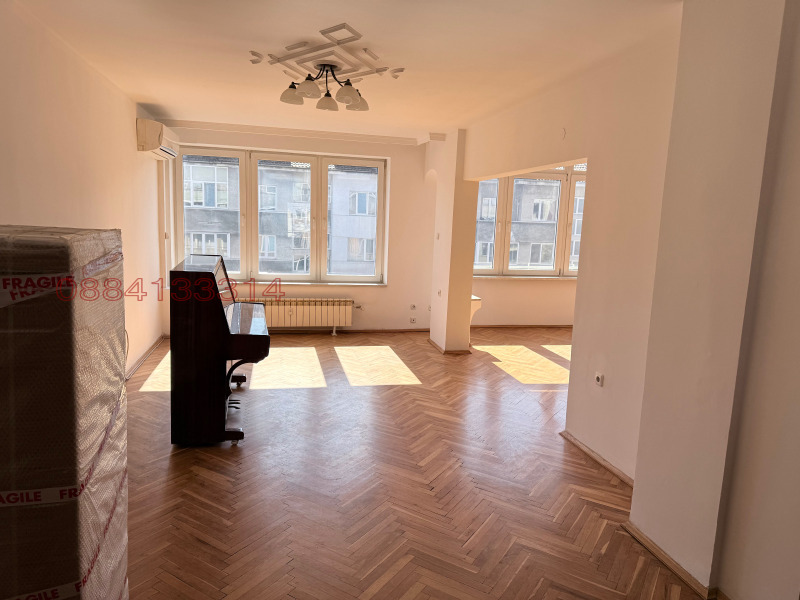 Просторен апартамент в центъра на София. В близост до метро и автобус. В близост до парк, НДК и училища. С възможност да се направи трета спалня! Хола и трапезарията са с изцяло южно изложение и двете спални със северно изложение. Има една баня с тоалетна и отделно една тоалетна. Има асансьор.