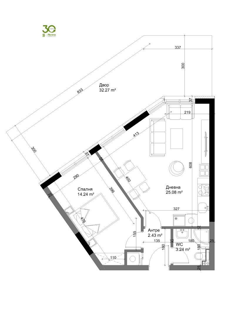 Вашият уютен дом с гледка към езерото и града. Жилището е със северозападно изложение, една спалня и директен достъп до зеления собствен двор 32 кв. м. , където да посрещнете утрото с кафе или да прекарате вечерите под открито небе. Усещане за дом с характер и връзка с природата.