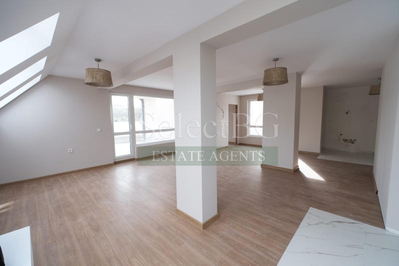 Панорамна, светла и обширна всекидневна с кухненски бокс 52, 04 кв. м. , две спални, баня с тоалетна в общо помещение, две просторни, слънчеви тераси с панорамна гледна .