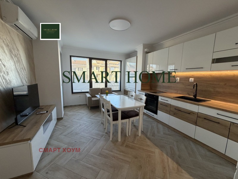 Агенция Смарт Хоум Ви предлагат тристаен апартамент находящ се в сграда ново строителство в кв. Зона Б . Ситуирано на пети междинен етаж с площ от 90 кв. м. , разпределени между коридор, дневна с кухненска част, две спални, баня с тоалетна, мокро помещение и тераса. Жилището е в много добро състояние, отдава се във вида нан снимкити - напълно обзаведено и оборудвано с нови мебели и ел. уреди. Отоплението и охлаждането е решено чрез три инверторни климатика. В наемната цена е включено външно паркомясто и входни такси. Подходящо за семейство или работещи хора! Реф. 429