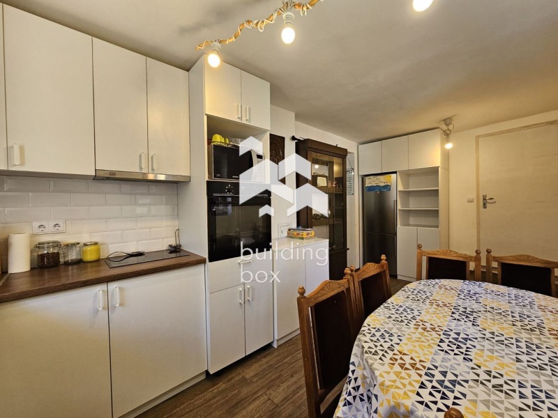 СЪСТОЯНИЕ: Имотът е изцяло реновиран в скандинавски стил и е готов за незабавно нанасяне. Всички помещения са обновени с висококачествени материали. Електрическата и ВиК инсталациите са изцяло подменени. Приземният и първият етаж са с вътрешна изолация. Кухнята е нова и напълно оборудвана с вградена фурна, керамични котлони, вградена съдомиялна машина, гранитно-полимерна мивка, хладилник и пералня всичко необходимо за комфортно ежедневие.