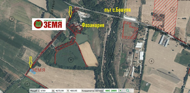 Лице 18 метра на асфалтов път , на 800 метра от Фазанарията на Бошулско шосе. На 300 метра от река Марица. Подходящ за селскостопанска и производствена дейност.