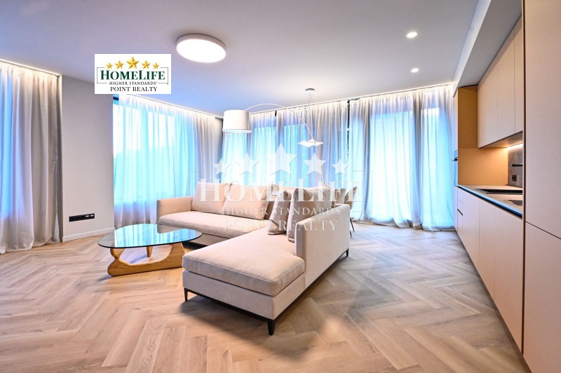 HomeLife Point ви представя изключителен двустаен апартамент под наем в най-новия емблематичен жилищен комплекс в София - ' КОШЕР' с включено паркомясто в цената! Съчетание от локация, модерна визия, технология и удобство за обитателите му. Апартаментът е разположен на пети етаж с южно изложение на дневната част и гледки към планината. Луксозно обзаведен и оборудван с всичко необходимо по индивидуален проект с висок клас мебели и техника. Разполага с просторна дневна свързана с кухненски кът с излаз към балкон, спалня, баня с тоалетна и просторно входно антре.