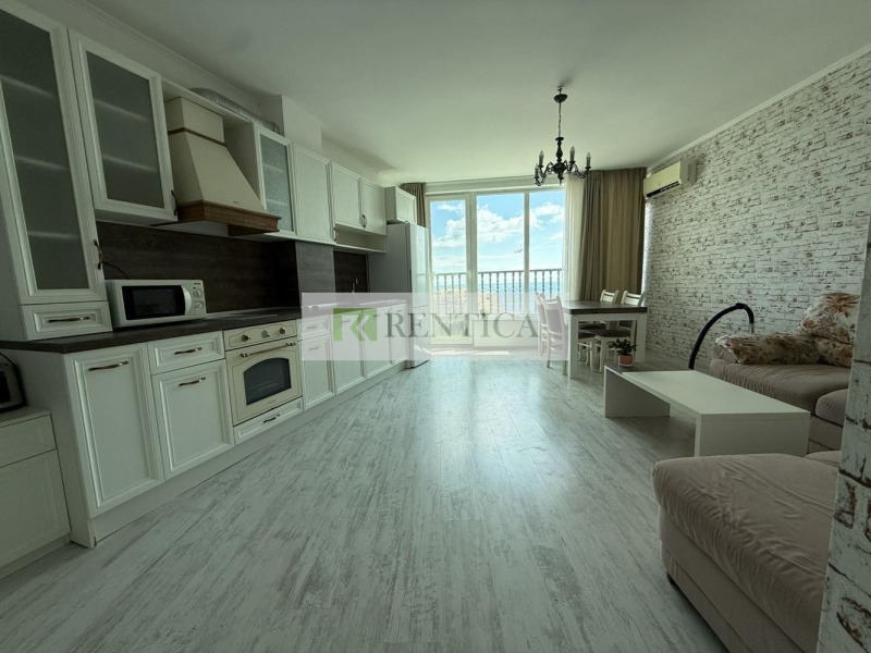 ОФЕРТА 8599 ✅ Rentica.bg предлага под наем напълно обзаведен, тристаен апартамент в местност Ален Мак. Апартаментът се намира на шести етаж в затворен комплекс с охрана, на тихо място близо до плаж Кабакум и к. к. Слънчев ден. На територията на комплекса има басейн, СПА център, озеленен двор. Състои се от просторен дневен тракт с трапезария и кухненски бокс, ДВЕ спални, баня с тоалетна, голяма тераса. Апартамента е обзаведен и оборудван с всичко необходимо за домакинството. Отоплението е с климатици. Общите пространства се поддържат в отлично състояние. Отдава се дългосрочно. Включено в цената ПАРКОМЯСТО!
