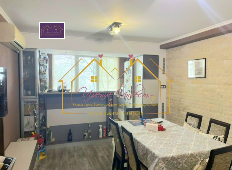 Недвижими имоти ИМЕНИЕ Инвест Ви предлага отличен многостаен, напълно обзаведен апартамент на ТОП локация в района на Канев Център в град Русе. Имотът е с площ от 82 кв. м. , намиращ се на етаж 3 от общо 8, с асансьор в сграда с поддържани общи части. Апартаментът е в отлично състояние, много светъл, просторен, с ТЕЦ, саниран, с блиндирана входна врата, PVC дограма, напълно обзаведен и готов за нанасяне. Жилището е много функционално като е състои от коридор, всекидневна с кухня и трапезария, три самостоятелни спални, две от които с тераси и баня и тоалетна- две отделни помещения. Отоплението е на ТЕЦ, но за Ваше удобство има монтирани и климатици. Намира се на много стратегическо място, в изключително развит район, на метри от Русенски университет, Канев Център, училище Възраждане, близо до парк и множество магазини, детски градини, аптека, заведения за хранене и много други удобства.