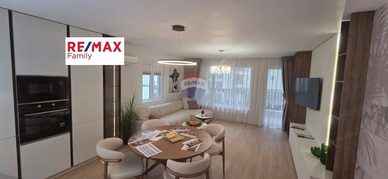 Жилището е разположено на трети жилищен етаж в нова жилищна сграда, въведена в експлоатация през 2025г. Апартамента е с обща площ от 133 кв. м. , изложение юг-изток, напълно покрито, разположено в нова тухлена сграда. При следното разпределение: просторна всекидневна с чиста площ от 32 кв. м. и излаз на южна тераса с красива гледка към вътрешния двор на сградата, добре озеленен и подържан. Две самостоятелни бани с две тоалетни. Две спални всяка с площ от 17 кв. м. и 16 кв. м. Килер в който са разположени пералня, сушилня, водна термо помпа от най-висок клас. Две отделни тераси. Лоджия. Г образен коридор.
