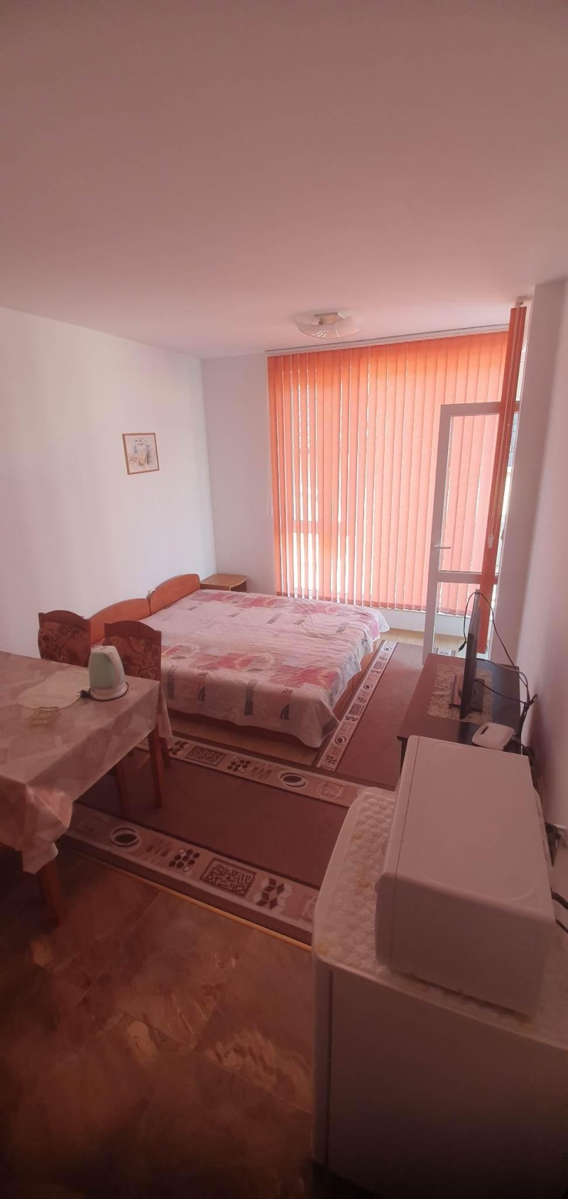 Намира се на тиха и спокойна улица, на 200м от плажа, заведения, автобусна спирка и магазини.