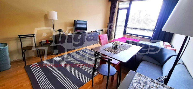 Студиото е просторно, светло и функционално организирано. Разполага с входно антре с голям гардероб, което осигурява достатъчно място за съхранение. Основното помещение включва кухненски бокс, оборудван с всичко необходимо мивка, готварска печка, котлони, абсорбатор, съдомиялна, хладилник и кафе машина. Зоната за хранене е с маса и столове, а кътът за отдих е обзаведен с ъглова мека мебел, два шкафа, LED телевизор и комфортна спалня. Студиото е климатизирано, осигурявайки комфорт през цялата година.