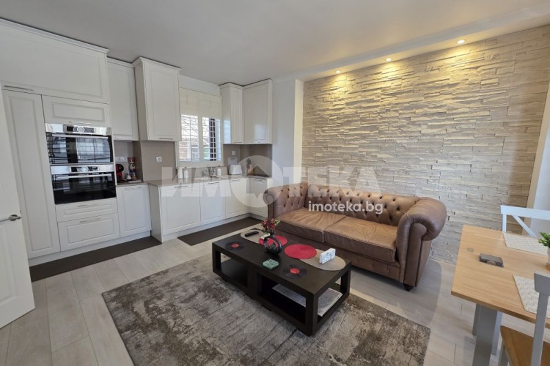 Апартаментът е напълно обзаведен с внимание към детайла и оборудван с висок клас електроуреди Bosch пералня, съдомиялна, микровълнова фурна и фурна за готвене, както и климатик Daikin.