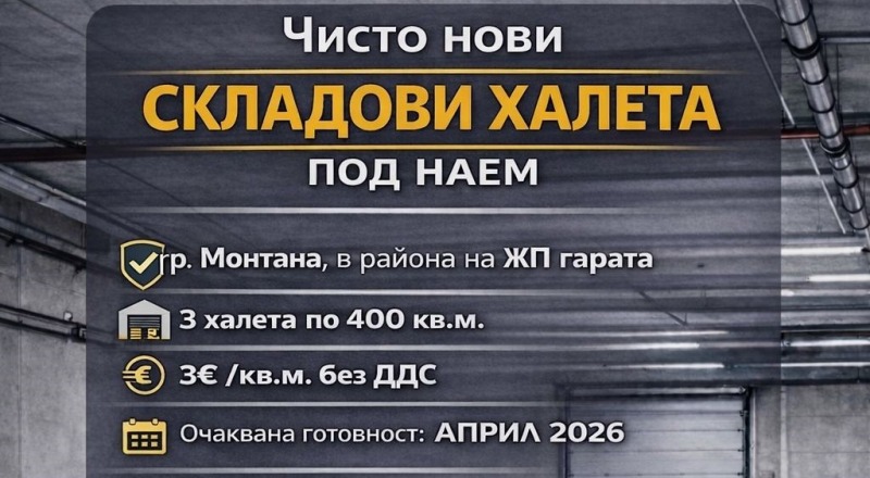 Чисто нови складови халета под наем в индустриалната зона на гр. Монтана