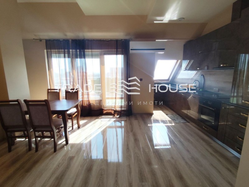 Нов апартамент. Луксозно обзаведен. Специална подова настилка, шкафове от висококачествен материал, климатик, 40' ТВ, нова и скъпа холова гарнитура, кресла с функция 'релакс', голям хладилник с фризер от висок клас, вградена печка с керамични котлони, пералня, бойлер и т. н.