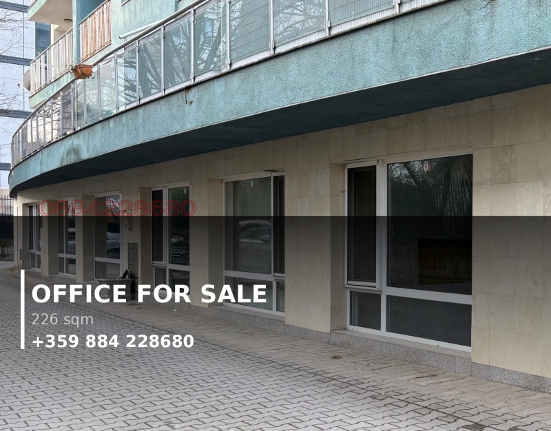 Продава се офис на партерен етаж с обща площ 226, 76 кв. м. в гр. София, квартал Кръстова вада, ул. Асен Йорданов 61. Локацията е на 600 метра от Парадайс мол (9 мин пеша). Имотът няма лице към улицата, а гледа странично към вътрешния двор на блока.
