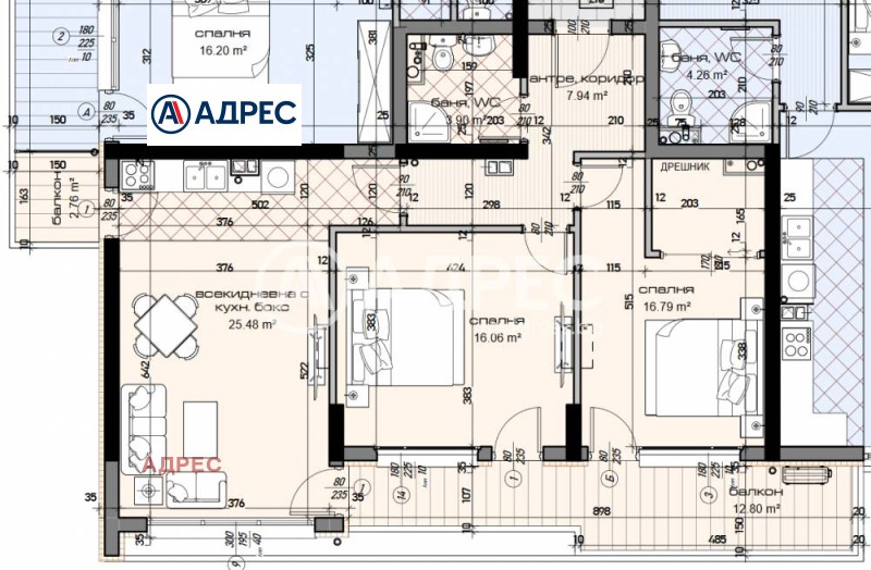 Тристаен изцяло южен апартамент, в нов изключително луксозен жилищен проект, с отлична локация в кв. Младост. Жилището се състои от дневен тракт 26 кв. м, две спални по 16 и 17 кв. м, баня с тоалет, WC, дрешник, тераса на трите стаи. . Завършен по БДС на шпакловка и замазка, с блиндирана входна врата. Възможност за закупуване на закрито или открито паркомясто или гараж.