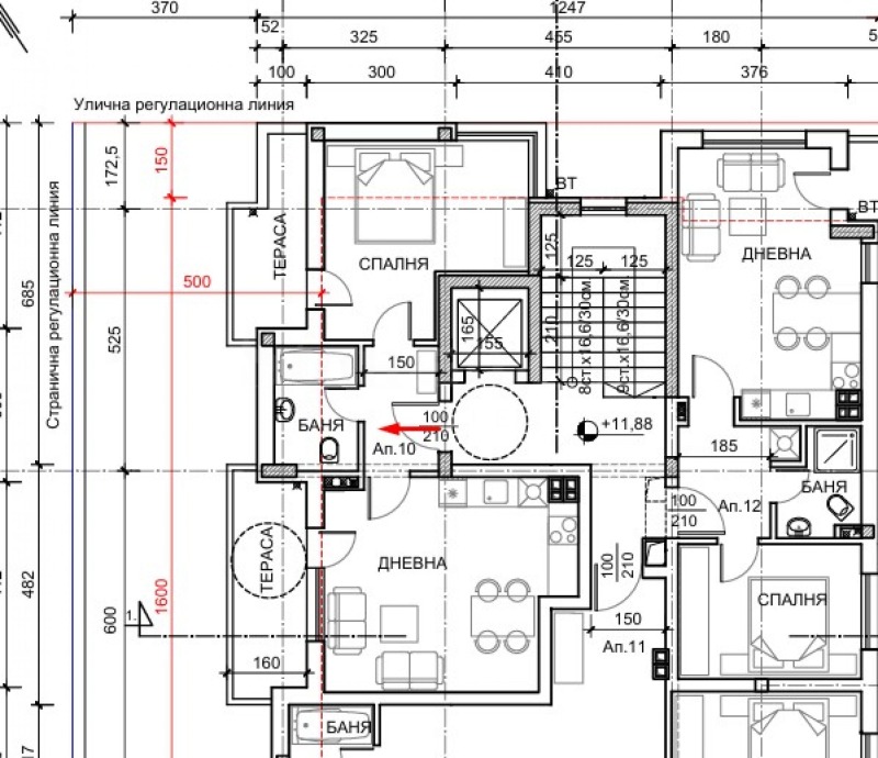 В сградата се предлагат общо 13 апартамента:
