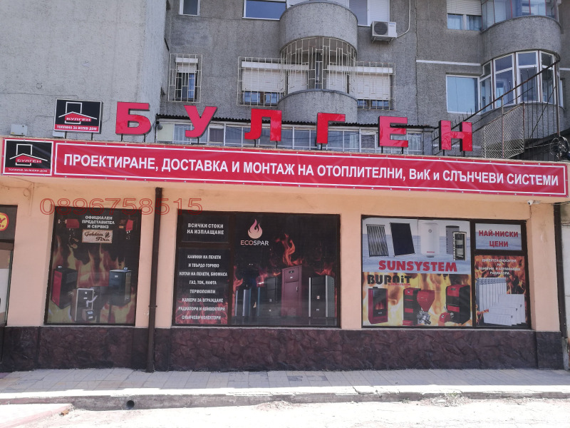 Магазина е партерен с вход както от предната, така и от задната страна на блока. Монтирана е голяма секционна врата Ноrmann за товаро-разтоварна дейност с достъп за бус или камион. Цялата площ е след направен пълен ремонт:хидро и топло изолация на плочата, отстояваща извън блока, нова ел. инсталация с изцяло подменени енергоспестяващи лед осветителни тела, оптичен интернет и тв. ,СОТ161, видеонаблюдение, комбинирана отоплителна система на пелети и ток. Обособена е и напълно обзаведена офисна част, както и баня с тоалетна. Отделно има и малък склад!