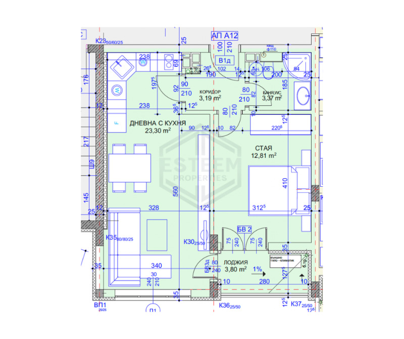 ➤ Дневна с кухня и трапезария: Просторна и светла зона за всекидневието.