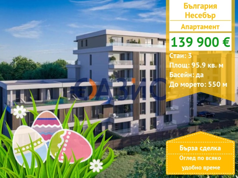 Комплекс ' Несебър Парадайз' е нов модерен комплекс, който обещава да се превърне в едно от най-атрактивните места за инвестиции и живеене в района на Несебър. Разположен само на 600 метра от морето и на 500 метра от най-големия аквапарк в България, този комплекс предлага перфектния баланс между спокойствие, забавления и близост до забележителностите на града.
